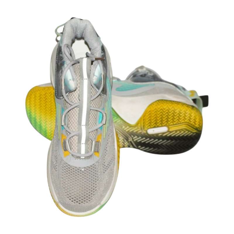 Introducing our imported sneakers, featuring a sleek blend of mostly grey with vibrant accents of yellow and blue. These sneakers not only elevate your style but also provide superior comfort, making them perfect for everyday wear.