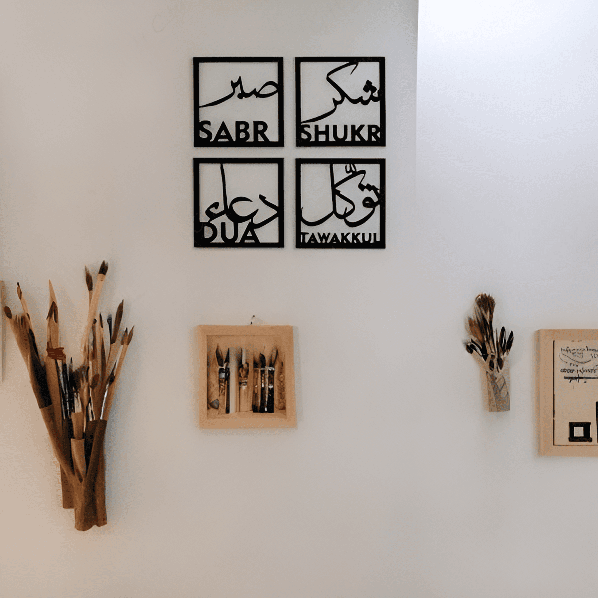 Four Elements of Life – Sabar – Shukar – Dua – Tawakkul – Islamic Wooden Wall Art for Home