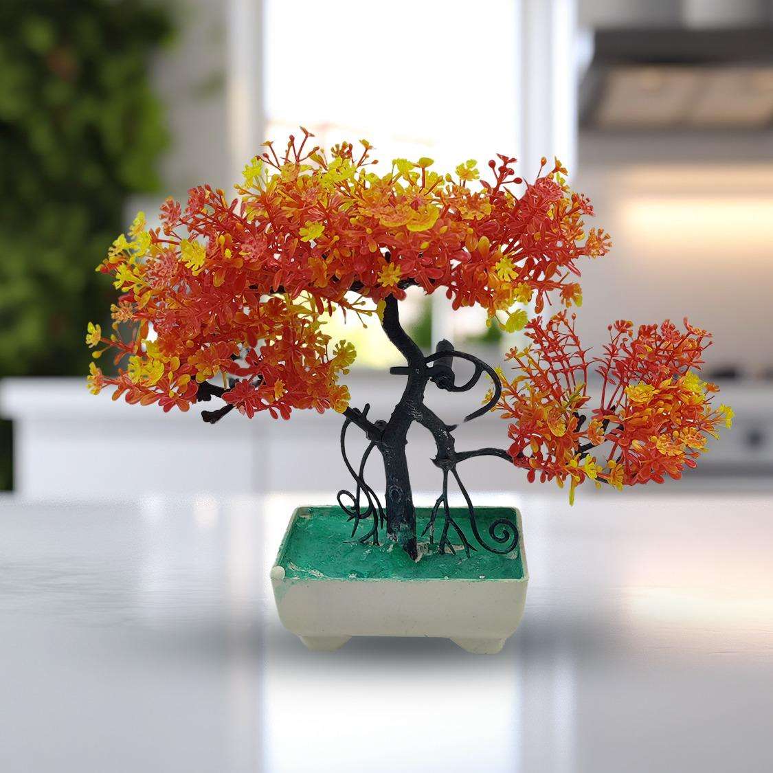 - Brighten up any space with this vibrant Orange Artificial Bonsai Tree. Standing at 22 cm tall and 10 cm wide, this compact tree adds a pop of color to your home, office, or bedroom decor. Made from high-quality plastic,