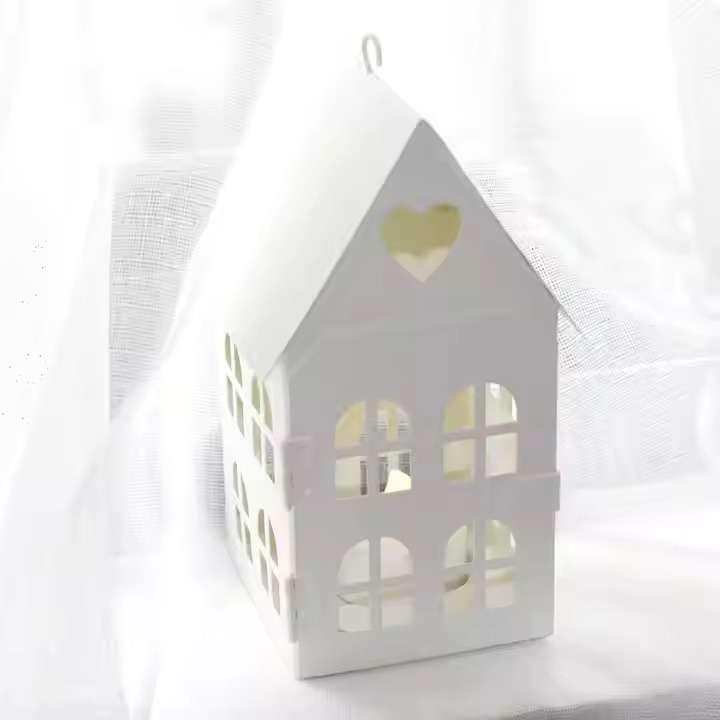 - white house design tea light candle holder small home decorative vintage metal lantern with heart pattern