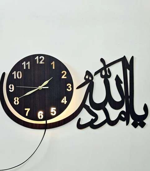 Ya Allah Madad – 3d Islamic wall decor clock with light for home and office decoration